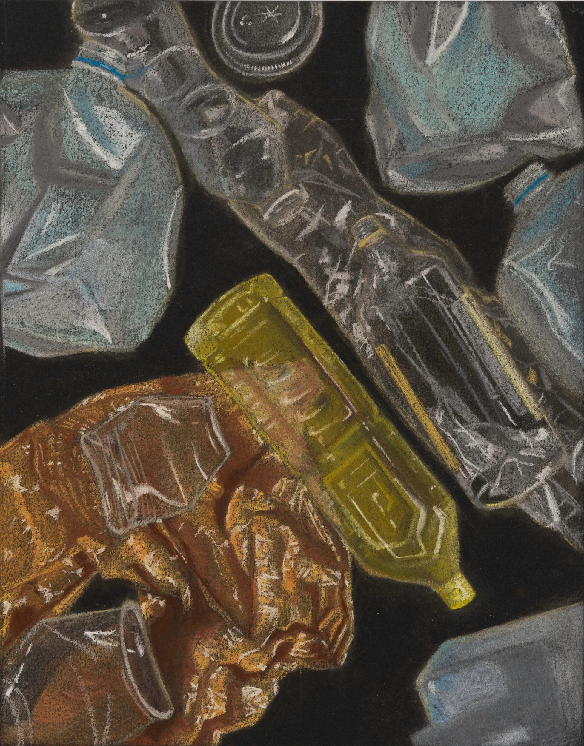 Recycling Is Only Part of the Solution, 2020, soft pastels on black paper, 11”x14”
